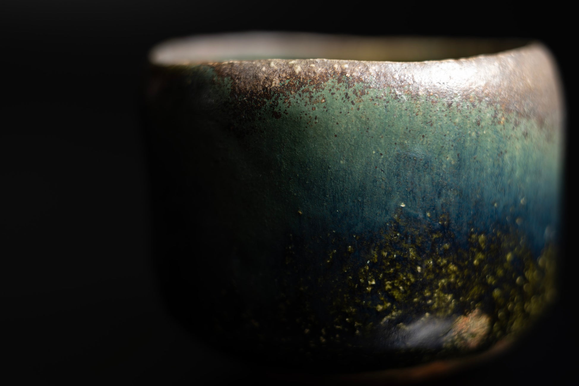 幸兵衛窯 八代 加藤亮太郎は美濃桃山陶の伝統に正面から立ち向かい、自ら窯を築き、穴窯焼成の志野、引出黒、織部、黄瀬戸など、特に茶盌の制作に力を入れています。また書と陶が融合した作品や、異素材とのコラボレーションも積極的に手掛けています。これからの美濃を牽引すると期待される存在であり、その年の最も優秀な作家に対して授与される「2023年度 日本陶磁協会賞」を受賞しています。