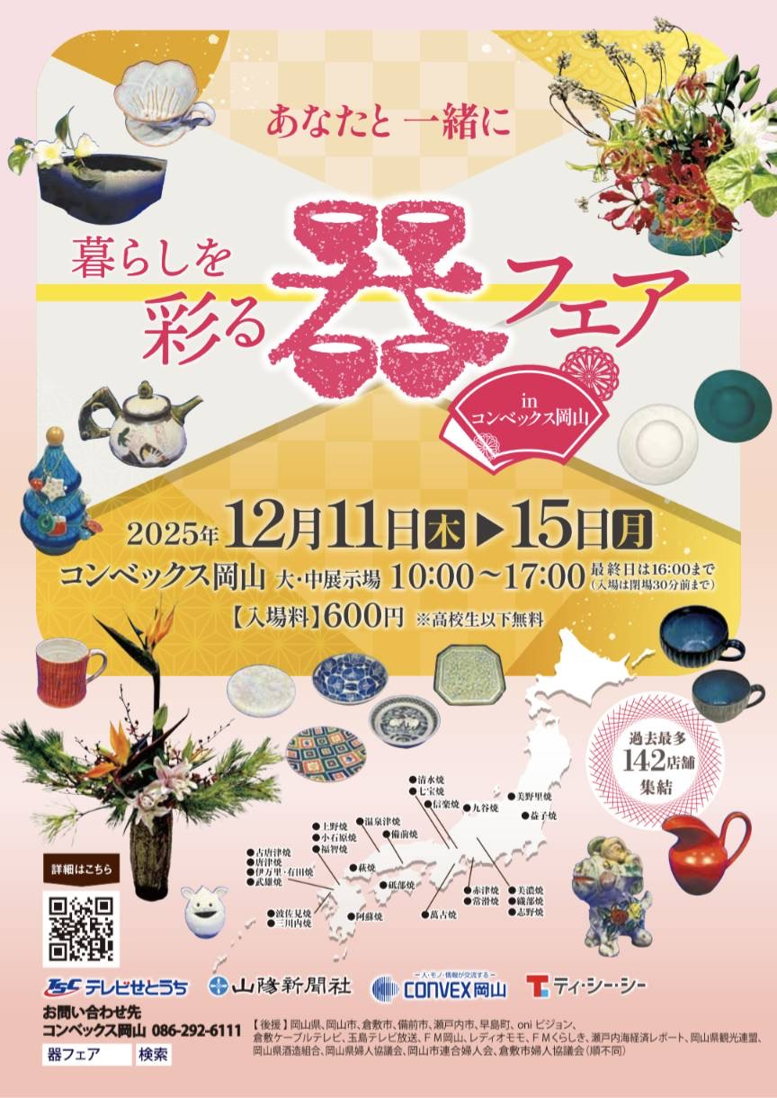 恒例の岡山での器フェアに出展いたします。新作をご用意してブースNo.22にてお待ちしております。ご当地の皆様、ぜひお出掛けください。